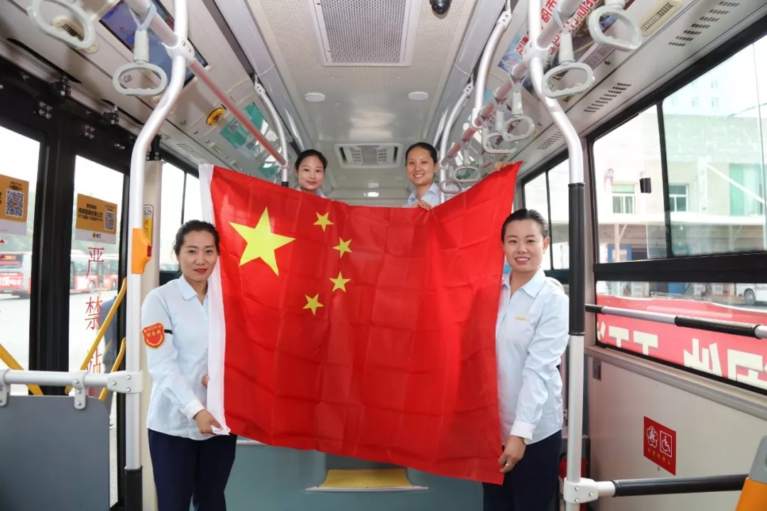 2019年10月1日,山西臨汾。公交人用堅(jiān)守向祖國(guó)獻(xiàn)禮,祝祖國(guó)生日快樂。作者:蘇強(qiáng)