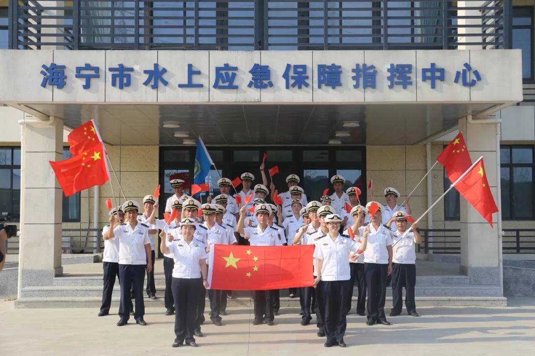 2019年9月27日,浙江海寧。海寧港航人舉行“看水運(yùn)成就展 向國(guó)旗敬禮 慶祝新中國(guó)成立70周年”主題活動(dòng),合唱《我和我的祖國(guó)》。作者:柏杜人