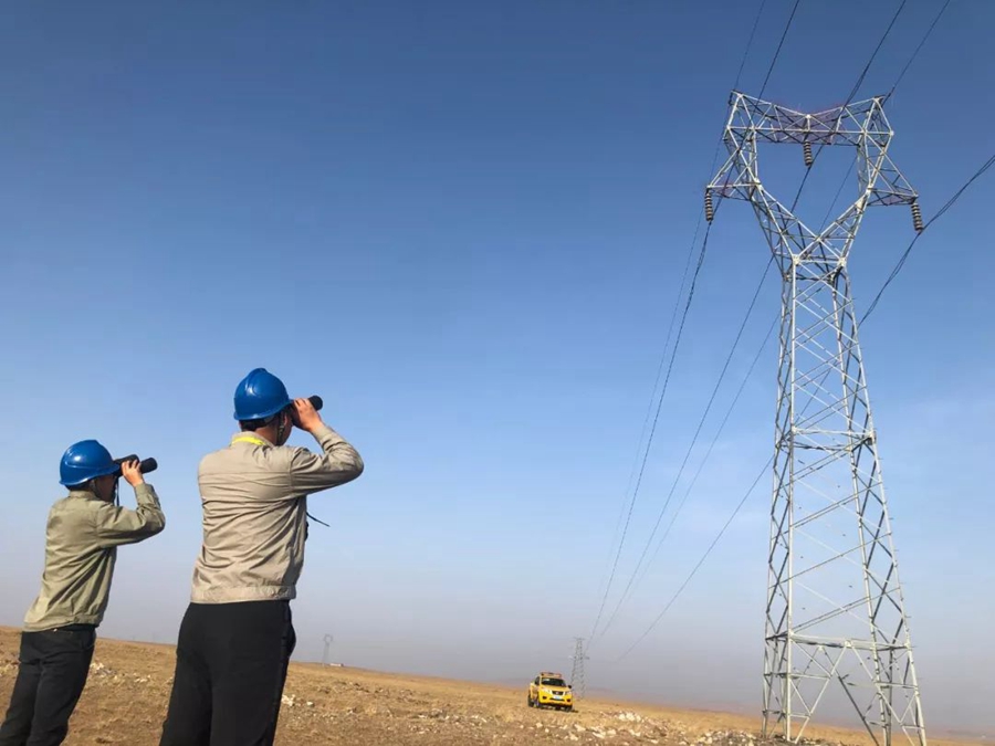 10月1日,內(nèi)蒙古錫林郭勒盟。電業(yè)局輸電工人正在巡視輸電線路。作者:雨濛