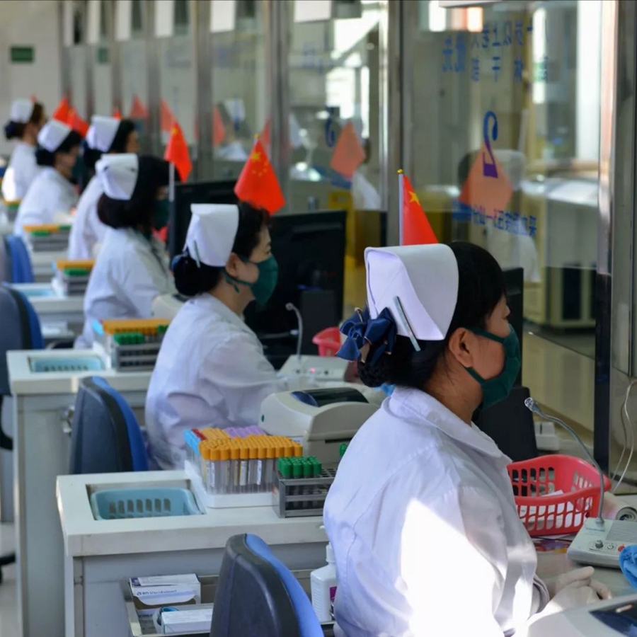10月2日,遼寧沈陽。采血中心的護(hù)士們國慶期間依然堅(jiān)守崗位。作者:董志光