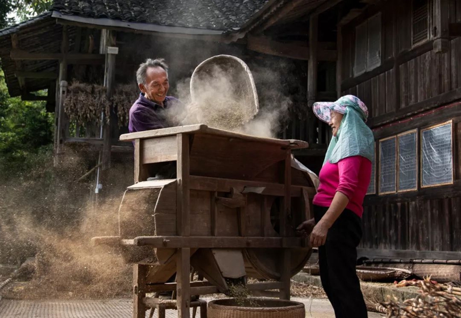 9月30日,湖北隨州。白果村一對夫婦在自家院落里忙碌。作者:大彭