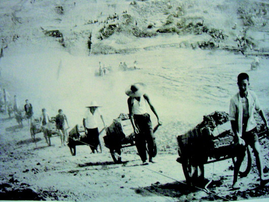 1967年,荊州地區(qū)調(diào)集了京山、天門、荊門、鐘祥和潛江五個縣的數(shù)萬名民工與移民一起修筑了一條長達(dá)45.4公里的漢江防洪堤,耗費了土石共計6526萬立方米。這些土石足夠填滿4.5個西湖了。這么大的工程全靠移民和民工肩挑背扛板車推。此后每年,移民都在此基礎(chǔ)上不斷加高圍堤。