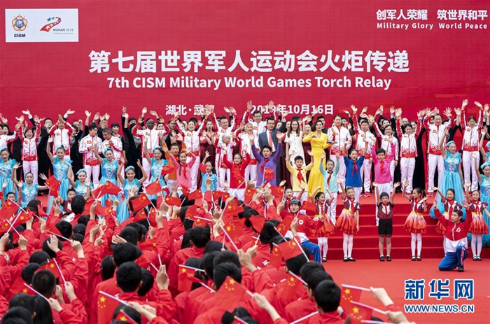 10月16日,第七屆世界軍人運動會火炬?zhèn)鬟f活動在武漢東湖綠道舉行。這是第七屆世界軍人運動會火炬?zhèn)鬟f活動現(xiàn)場(10月16日攝)。新華社記者 熊琦 攝