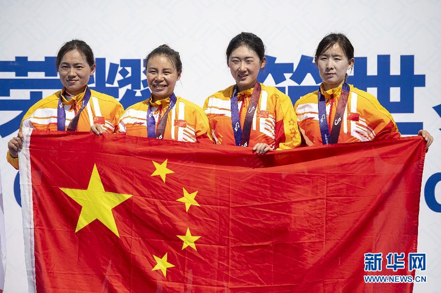 10月20日,中國(guó)隊(duì)選手梁洪玉、普譯嫻、孫佳君、趙茜沙(由左至右)在頒獎(jiǎng)儀式上。 當(dāng)日,在武漢舉行的第七屆世界軍人運(yùn)動(dòng)會(huì)公路自行車(chē)女子公路團(tuán)體決賽中,中國(guó)隊(duì)以4小時(shí)05分46秒的成績(jī)獲得金牌。 新華社記者熊琦攝