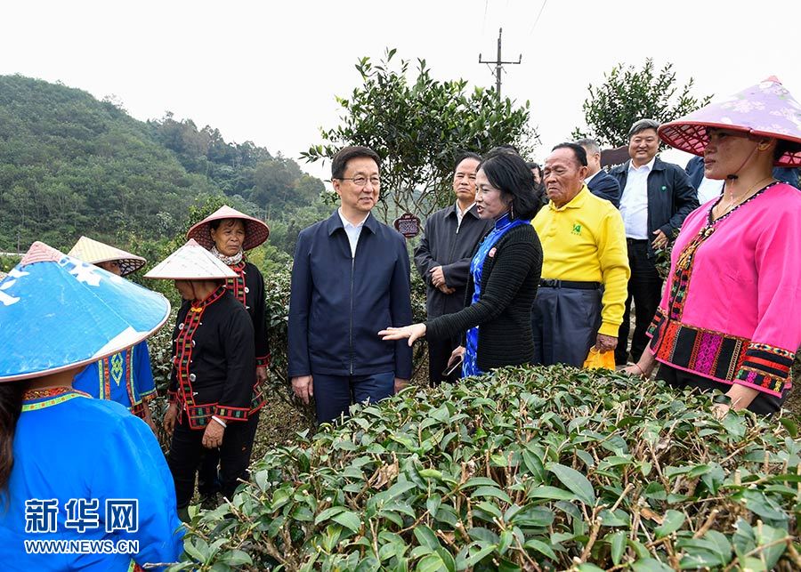 11月9日至11日,中共中央政治局常委、國務院副總理韓正在海南調研。圖為11月10日,韓正在五指山椰仙有機茶生態(tài)觀光園,了解高山雨林有機茶種植等特色產業(yè)培育、病蟲害物理防治、種植產業(yè)和旅游產業(yè)融合發(fā)展等情況,與正在茶園工作的當?shù)剞r民和貧困戶交流。 新華社記者 高潔 攝