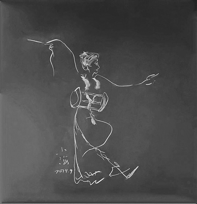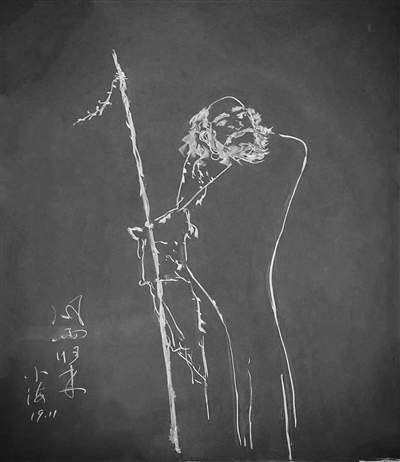 揚(yáng)子晚報(bào)記者注意到,這些用“數(shù)學(xué)語言”繪成的粉筆畫,有修長的女子,有年邁的老人,有頑皮的孩童,有淘氣的小貓;從動(dòng)作上看,有的在遠(yuǎn)望,有的在賞花,有的在舞蹈,有的在拉琴,有的在采摘,有的在打球,有的在觀察小蟲;從色彩上看,有的只有白色或粉紅色一種顏色,有的有兩種顏色,但不超過三種顏色。無論是一種顏色還是有限的兩三種顏色,作品都生動(dòng)傳神,幾條柔和的曲線稍作組合,寥寥數(shù)筆,就賦予了作品生命力,顯示了作者嫻熟高超的繪畫技巧。每幅畫的角落,有的還寫上了“童趣”、“采摘”、“風(fēng)雨歸來”、“運(yùn)動(dòng)美”的標(biāo)題,每一幅畫都署名“小海”,行書字體也和畫面一樣流暢靈動(dòng)。年近花甲的朱老師以“小”自稱,體現(xiàn)了他率真謙虛的性格和對(duì)工作的態(tài)度。