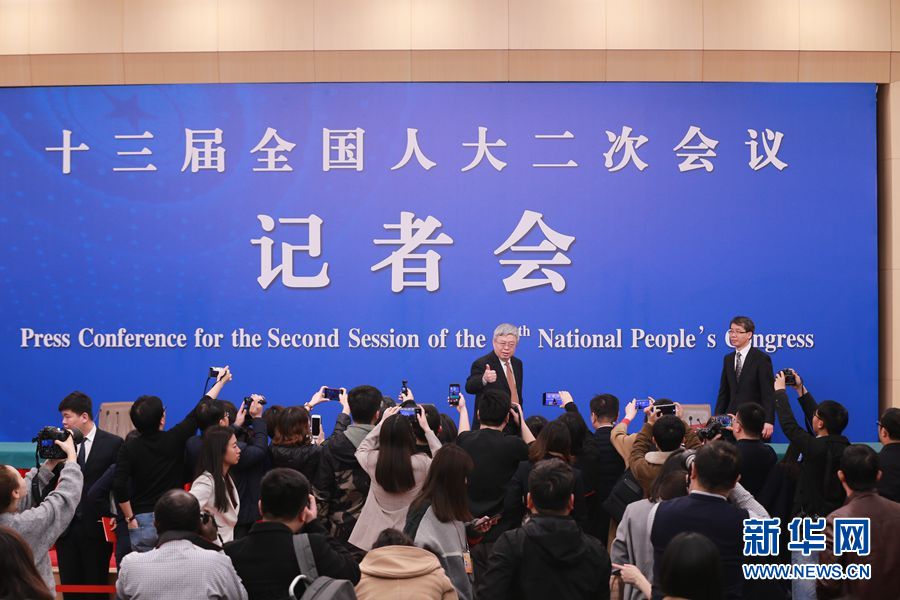十三屆全國(guó)人大二次會(huì)議新聞中心于3月7日10時(shí)50分在梅地亞中心新聞發(fā)布廳舉行記者會(huì),邀請(qǐng)國(guó)務(wù)院扶貧開(kāi)發(fā)領(lǐng)導(dǎo)小組辦公室主任劉永富就“攻堅(jiān)克難——堅(jiān)決打贏脫貧攻堅(jiān)戰(zhàn)”相關(guān)問(wèn)題回答中外記者提問(wèn)。圖為記者會(huì)結(jié)束后劉永富與記者們交流。新華網(wǎng)?劉廈 攝