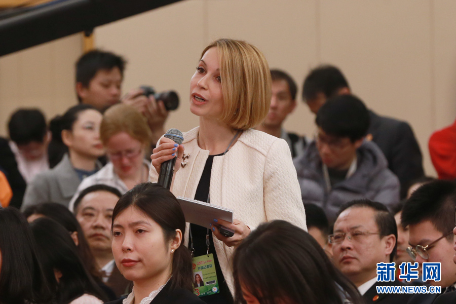 十三屆全國人大二次會議新聞中心3月8日10時在梅地亞中心新聞發(fā)布廳舉行記者會,邀請國務委員兼外交部長王毅就“中國外交政策和對外關系”相關問題回答中外記者提問。圖為今日俄羅斯國際通訊社記者。新華網/中國政府網 馬娟 攝