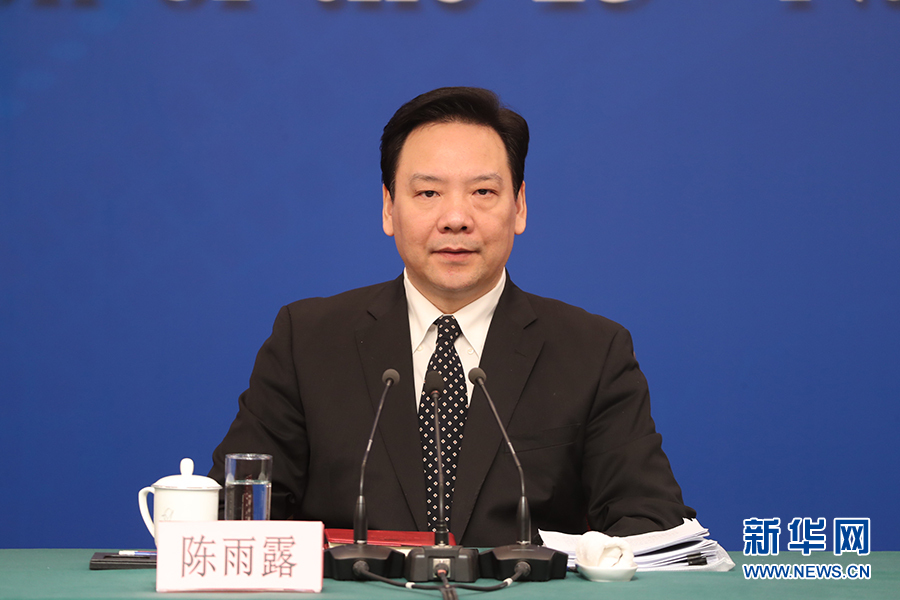 十三屆全國人大二次會議新聞中心于3月10日(星期日)上午10時30分在梅地亞中心新聞發(fā)布廳舉行記者會,邀請中國人民銀行行長易綱,副行長陳雨露,副行長、國家外匯管理局局長潘功勝,副行長范一飛就“金融改革與發(fā)展”相關問題回答記者提問。圖為中國人民銀行副行長陳雨露。新華網(wǎng)/中國政府網(wǎng) 陳杰 攝