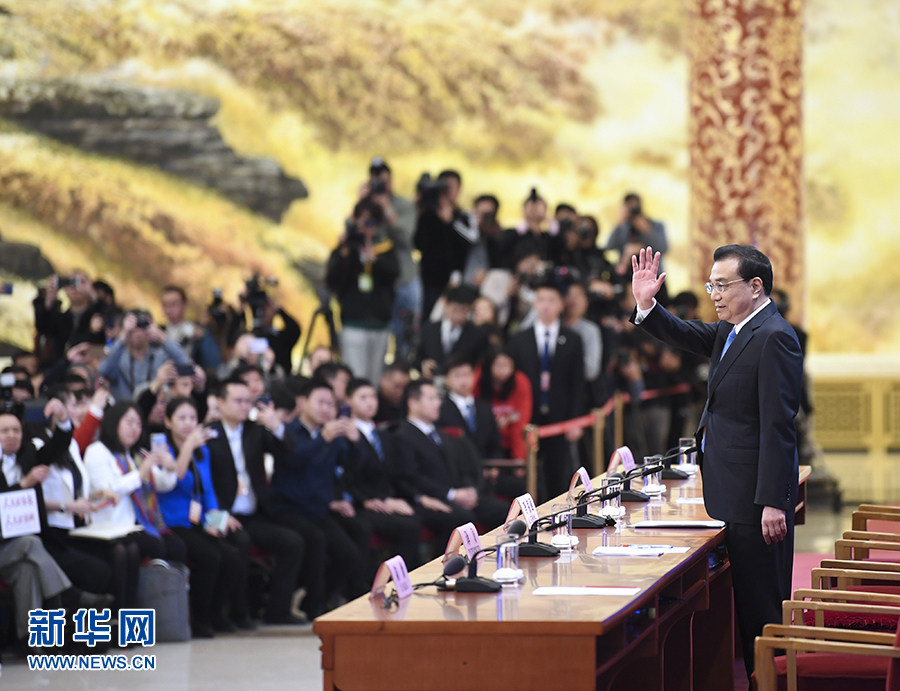 3月15日,十三屆全國人大二次會議在北京人民大會堂舉行記者會,國務(wù)院總理李克強(qiáng)應(yīng)大會發(fā)言人張業(yè)遂的邀請會見中外記者,并回答記者提問。 新華社記者 申宏 攝