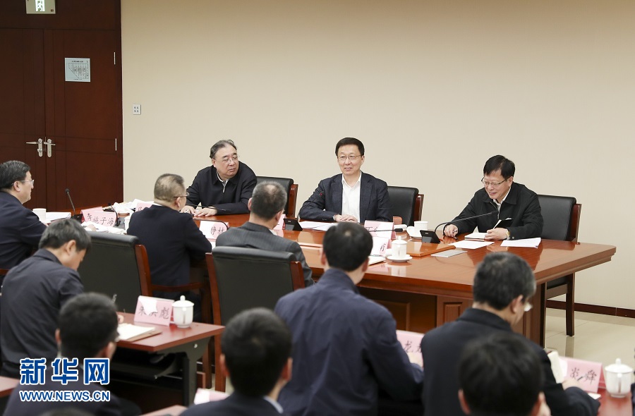 1月9日,中共中央政治局常委、國務(wù)院副總理韓正在國家醫(yī)療保障局召開座談會?!⌒氯A社記者 丁海濤 攝