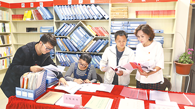 2019年是基層減負(fù)年,新疆庫車縣實(shí)行“基層一張表”試點(diǎn)改革,圖為干部到健康路社區(qū)匯總檔案報表。