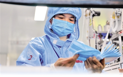 近日,河南省長垣市的醫(yī)用防護用品生產(chǎn)企業(yè)爭分奪秒全力趕制醫(yī)用產(chǎn)品。圖為工作人員在生產(chǎn)車間內(nèi)加工口罩。新華社發(fā)(郝源攝)