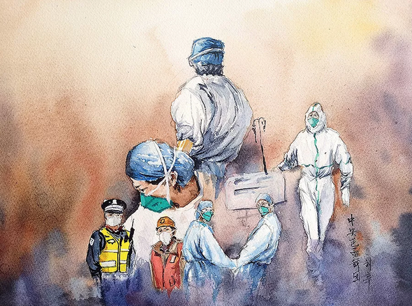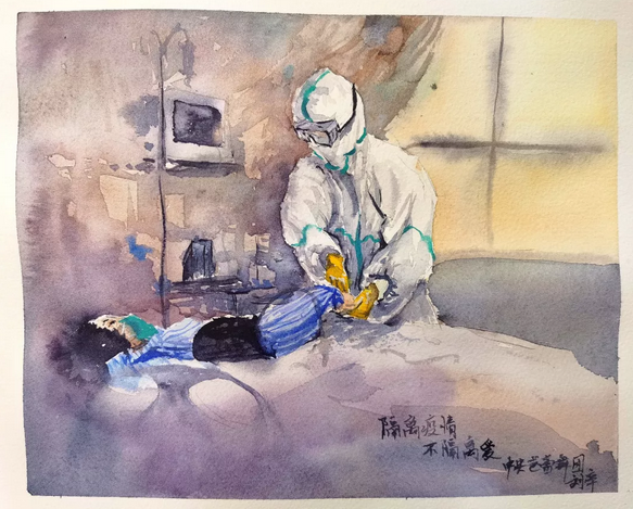 水彩畫《隔離疫情 不隔離愛》作者:中央芭蕾舞團(tuán)舞美設(shè)計(jì) 劉辛