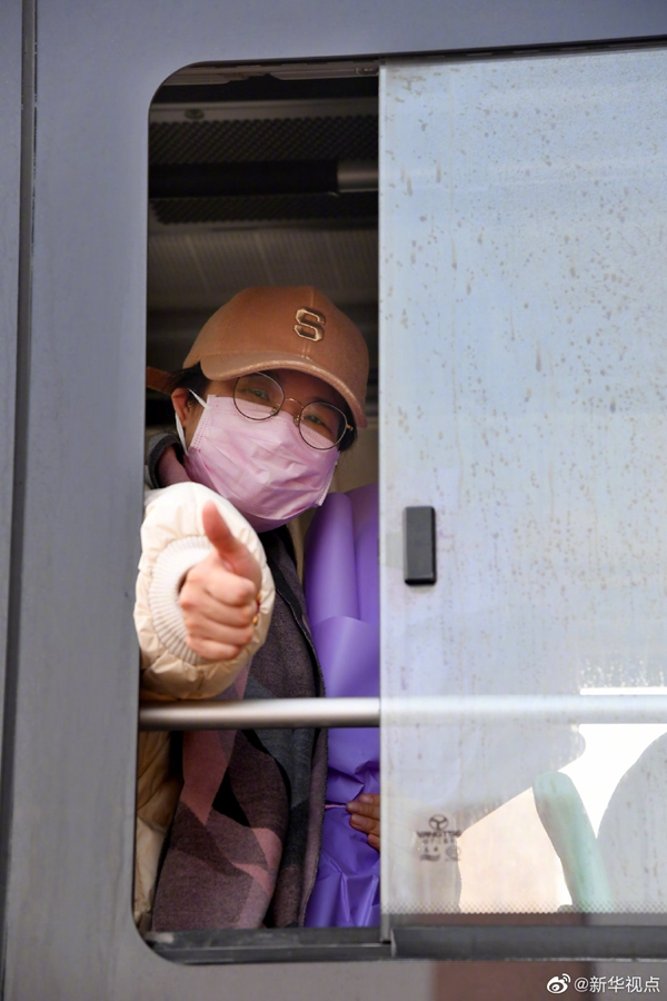 經(jīng)過火神山醫(yī)院醫(yī)護人員的精心診治,首批7名符合出院標準的新冠肺炎確診患者13日下午出院?;鹕裆结t(yī)院籌備工作指揮部統(tǒng)一安排車輛將患者分別送回所居住小區(qū)門口。
