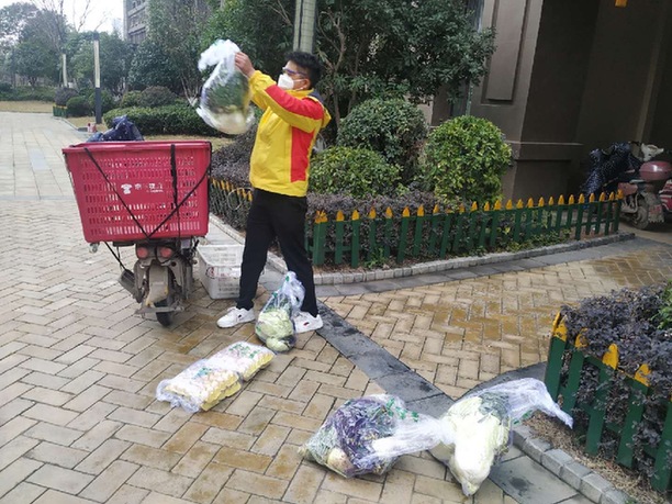 “主要是蔬菜、大米、藥品和取快遞,其中米是最缺的,大概100戶都缺米,今天(2月16日)就送了40戶,其次就是蔬菜,每天都要采購蔬菜?!笔普f,小區(qū)物業(yè)和相關(guān)商家會把志愿者的聯(lián)系方式發(fā)到業(yè)主群,有需要的業(yè)主就可以通過電話或微信和他們聯(lián)系。
