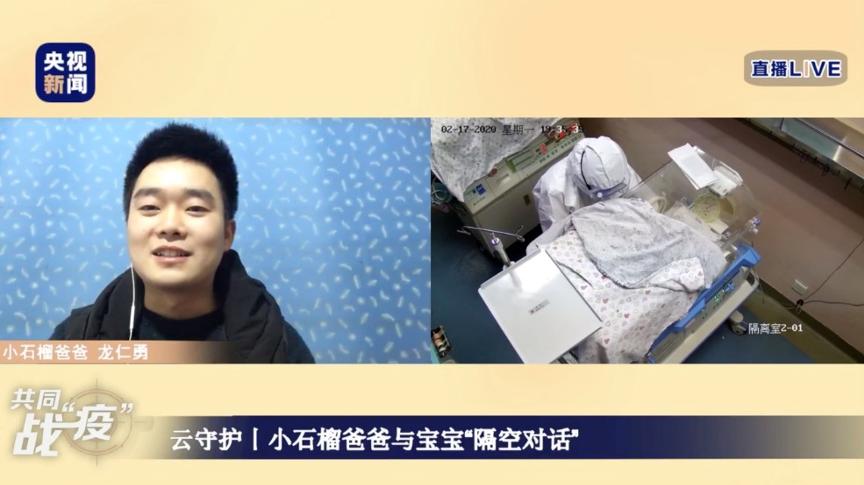 目前,石榴爸爸已經(jīng)出院,處在居家隔離狀態(tài)。他通過央視新聞《武漢云守護(hù)石榴寶寶》網(wǎng)絡(luò)直播,關(guān)注著寶寶的一舉一動(dòng),高興的心情溢于言表。在爸爸眼里,寶寶的每一次翻身、吃奶、舉手、抬腿,不管什么動(dòng)作都是最美好的。