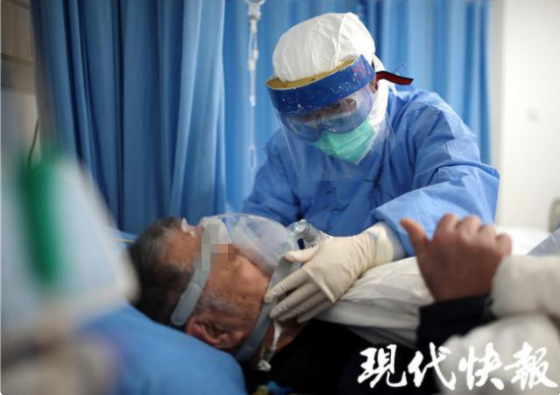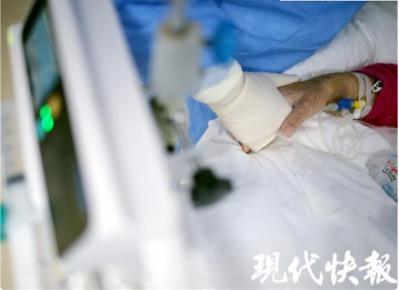 2月18日下午,現(xiàn)代快報記者走進(jìn)“紅區(qū)”——重癥隔離病房里,用鏡頭記錄下一組組“我和你”的故事。