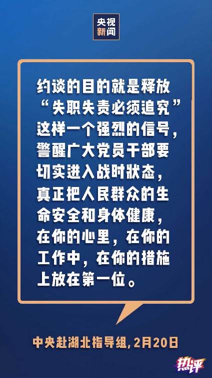 四是直接督促檢查一線黨政干部在疫情防控中的作為。既要進(jìn)行指導(dǎo),也要加強督查——這是習(xí)近平總書記對中央指導(dǎo)組提出的要求。連日來,中央指導(dǎo)組深入一線督查、督辦,發(fā)現(xiàn)問題后對有關(guān)市區(qū)負(fù)責(zé)人開展約談并曝光,還深入核查解決群眾反映的突出問題。之前公眾普遍關(guān)注的黃岡“一問三不知”干部被問責(zé)、武漢市區(qū)領(lǐng)導(dǎo)因轉(zhuǎn)運病人不力被約談等,都在此列。