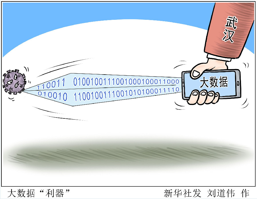漫畫:大數(shù)據(jù)“利器” 2月27日,一套新冠肺炎疫情信息智能管理應(yīng)用平臺(tái)在武漢市江漢區(qū)、武昌區(qū)等多個(gè)轄區(qū)內(nèi)的社區(qū)投入應(yīng)用。平臺(tái)集新冠肺炎患者信息收集、轉(zhuǎn)運(yùn)調(diào)度等功能于一體,整合醫(yī)院、疾控、醫(yī)保、公安、民政、通信運(yùn)營商等相關(guān)單位信息數(shù)據(jù),將幫助社區(qū)工作人員快速鎖定小區(qū)“四類人員”、科學(xué)調(diào)度轉(zhuǎn)運(yùn)力量,助力打贏疫情防控的阻擊戰(zhàn)。 新華社發(fā) 劉道偉 作