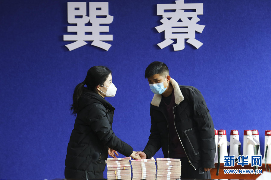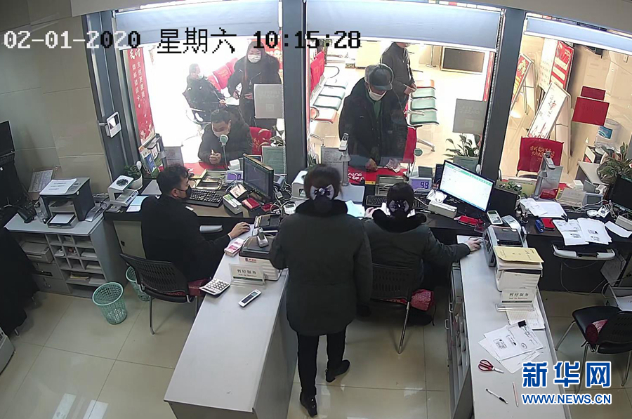 2月1日,在江蘇省宿遷市郵政儲蓄銀行泗洪上塘鎮(zhèn)支行,王玉齊老人以“退伍老兵”的名義向武漢紅十字會捐款9900元。 新華社發(fā)(截屏照片)