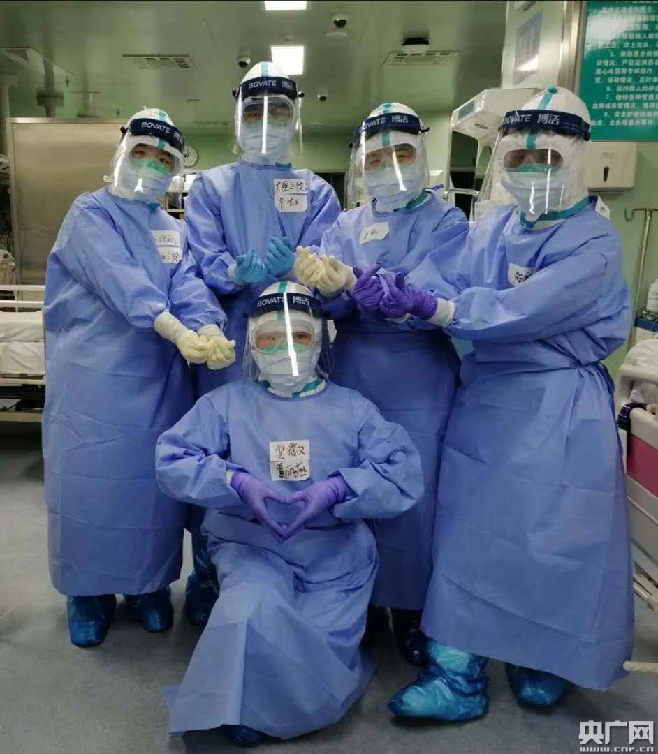 在武漢協(xié)和醫(yī)院西院區(qū)ICU支援的醫(yī)療隊(duì)隊(duì)員們(央廣網(wǎng)發(fā) 院方供圖)