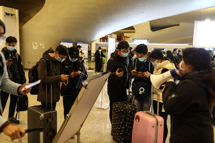 3月28日,武漢火車站,抵達(dá)的乘客在注冊健康碼。記者 趙迪/攝