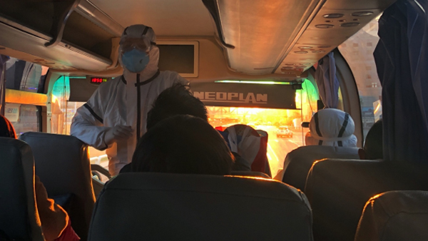 6、抵達(dá):17:45,專列抵達(dá)北京西站,乘客根據(jù)指引到所在區(qū)的集合地點(diǎn)集合,統(tǒng)一前往區(qū)里安排的分流地點(diǎn)。記者乘坐豐臺區(qū)組織的大巴,前往豐臺體育中心。