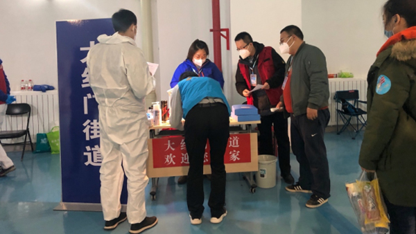 7、分流:到達(dá)豐臺體育中心后,按所在街道進(jìn)行分流。記者在完成體溫測量和身份驗(yàn)證后,乘坐大紅門街道組織的車輛前往社區(qū)。