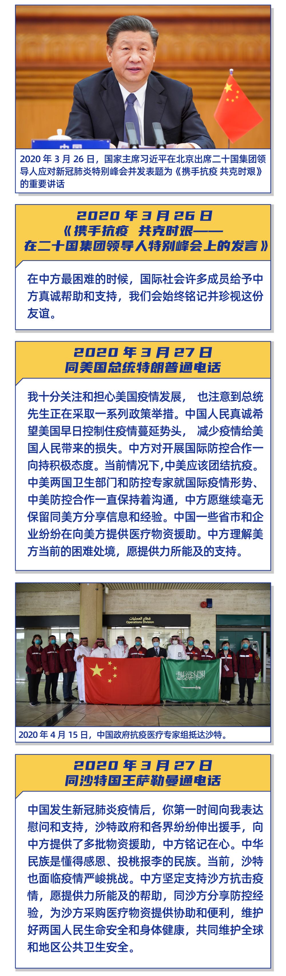 截至4月12日,中國已同153個(gè)國家舉行83場(chǎng)衛(wèi)生專家視頻會(huì)議;中國政府和民間已經(jīng)或正在向140多個(gè)國家和國際組織提供多批急需的醫(yī)療物資援助;已有60多個(gè)國家、地區(qū)和國際組織同中方出口商簽署防疫物資商業(yè)采購協(xié)議。中國外交部發(fā)言人15日表示,中國政府決定向沙特阿拉伯、埃塞俄比亞、布基納法索派遣抗疫醫(yī)療專家組。此前中國已向伊朗、伊拉克、意大利、塞爾維亞、柬埔寨、巴基斯坦、委內(nèi)瑞拉、菲律賓、緬甸、老撾、哈薩克斯坦、俄羅斯等12個(gè)國家派遣14支醫(yī)療專家組。