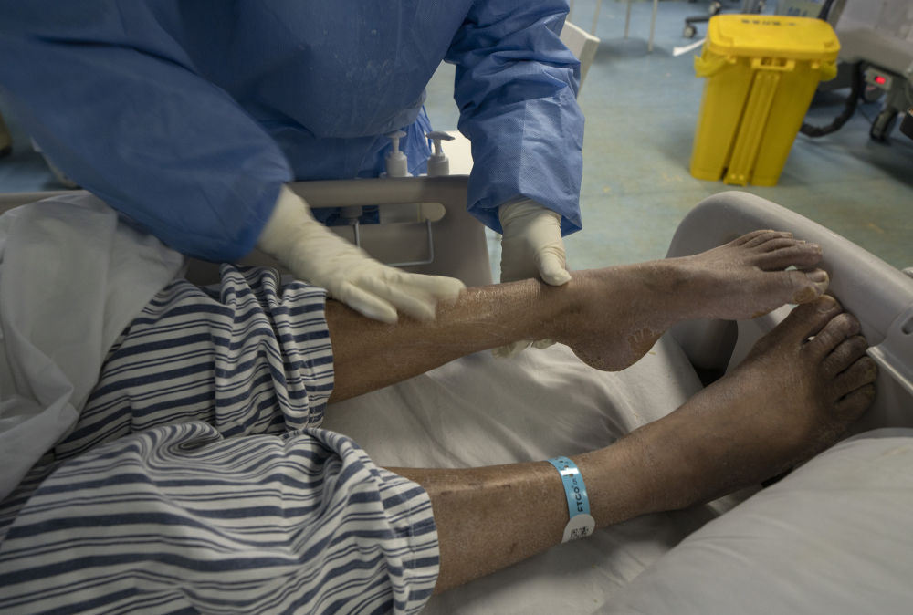 醫(yī)護人員幫他翻身時