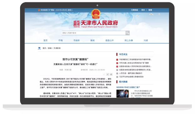 京冀來(lái)津人員通過(guò)“津心辦”APP、“津心辦”支付寶小程序、“津心辦”微信小程序申領(lǐng)天津“健康碼”,享受同城待遇,并依托全國(guó)一體化政務(wù)服務(wù)平臺(tái),通過(guò)跨地區(qū)防疫健康信息數(shù)據(jù)共享,實(shí)現(xiàn)京津冀“健康碼”信息互認(rèn),生成天津“健康碼”,憑碼出行。