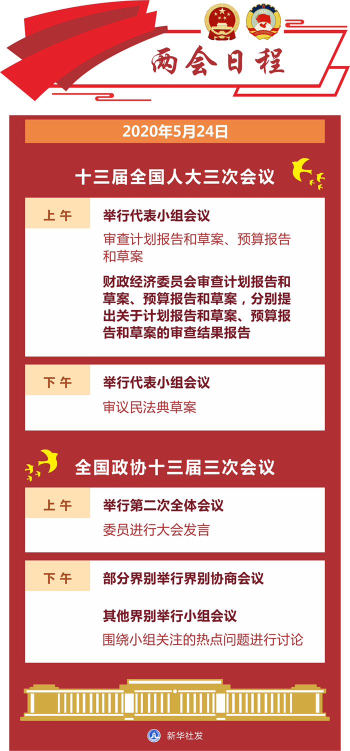新華社北京5月23日電? 24日上午,十三屆全國(guó)人大三次會(huì)議舉行代表小組會(huì)議,審查計(jì)劃報(bào)告和草案、預(yù)算報(bào)告和草案;財(cái)政經(jīng)濟(jì)委員會(huì)審查計(jì)劃報(bào)告和草案、預(yù)算報(bào)告和草案,分別提出關(guān)于計(jì)劃報(bào)告和草案、預(yù)算報(bào)告和草案的審查結(jié)果報(bào)告。下午舉行代表小組會(huì)議,審議民法典草案。