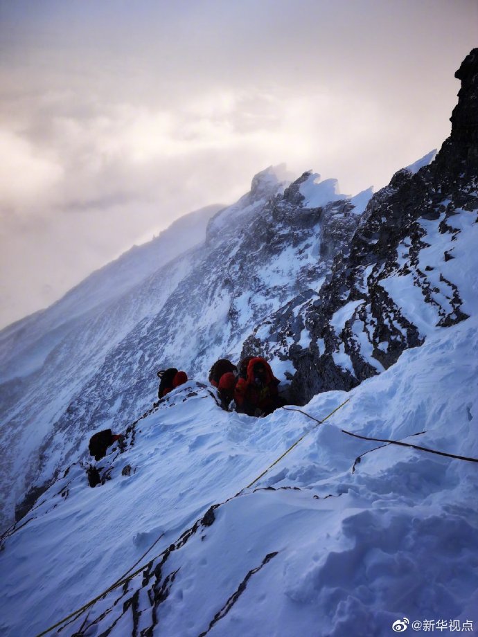 2020珠峰高程測量登山隊隊員正在通過8800米橫切