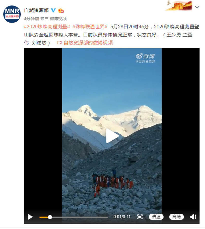 5月28日20時(shí)45分,2020珠峰高程測(cè)量登山隊(duì)安全返回珠峰大本營(yíng)。目前隊(duì)員身體情況正常,狀態(tài)良好。(王少勇 蘭圣偉 劉瀟然)