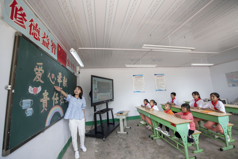 在開學(xué)第一課上,特崗教師陳燕子主持召開主題為“愛心奉獻(xiàn),責(zé)任擔(dān)當(dāng)”的班會(huì),為學(xué)生講解疫情防控知識(shí)、分享抗疫人物故事。