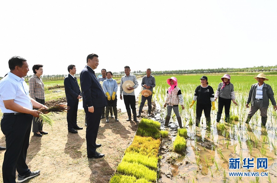 6月8日至10日,中共中央總書記、國家主席、中央軍委主席習(xí)近平在寧夏考察。這是6月9日下午,習(xí)近平在銀川市賀蘭縣稻漁空間鄉(xiāng)村生態(tài)觀光園,同正在勞作的村民親切交談。 新華社記者 鞠鵬 攝