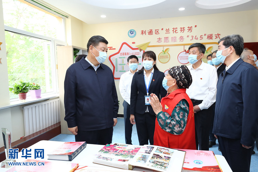 6月8日至10日,中共中央總書記、國家主席、中央軍委主席習(xí)近平在寧夏考察。這是6月8日下午,習(xí)近平在吳忠市利通區(qū)金花園社區(qū)黨群活動服務(wù)中心,同社區(qū)志愿者代表親切交談。 新華社記者 鞠鵬 攝
