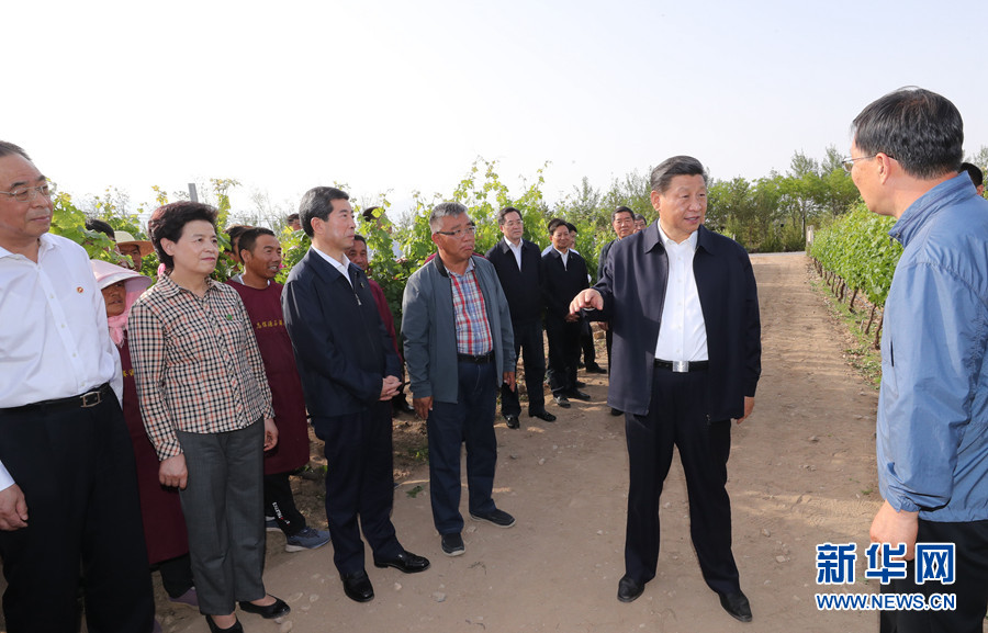 6月8日至10日,中共中央總書記、國家主席、中央軍委主席習(xí)近平在寧夏考察。這是6月9日下午,習(xí)近平在銀川市西夏區(qū)葡萄種植基地,同工人和技術(shù)人員交流。 新華社記者 鞠鵬 攝
