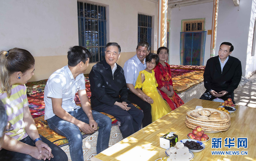 6月8日至12日,中共中央政治局常委、全國(guó)政協(xié)主席汪洋在新疆調(diào)研。這是6月11日,汪洋在喀什調(diào)研時(shí)與當(dāng)?shù)卮迕裼H切交談。 新華社記者 李濤 攝