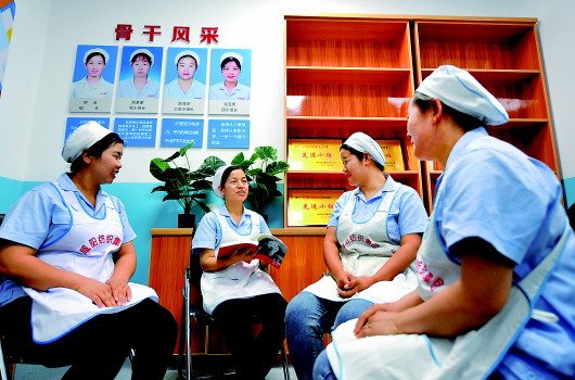 2015年國慶節(jié),呂生麗的丈夫被查出了腎衰竭。那時(shí)她剛進(jìn)廠工作沒多久,通常在長假前后不能請假??杉依镒罾щy的時(shí)候哪能離得了她,思前想后,呂生麗還是向當(dāng)時(shí)的小組長王曉榮提出了請假。沒想到王曉榮立刻說:“你先回家照顧家人,請假手續(xù)回頭再補(bǔ)?!眳紊愋睦锏拇笫^一下子落了地,涌起一陣溫暖。