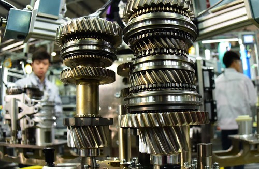 工人在湖北武漢東風格特拉克汽車變速箱有限公司生產(chǎn)線上工作。(新華社記者程敏 攝)