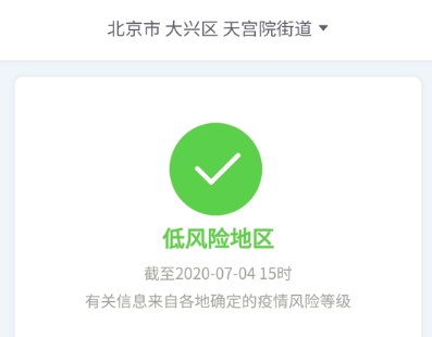 北京日報記者從國務院客戶端小程序“疫情風險等級”了解到,截至7月4日15時,北京市大興區(qū)天宮院街道、清源街道由中風險地區(qū)調(diào)整為低風險地區(qū);北京市大興區(qū)黃村(地區(qū))鎮(zhèn)由高風險降級為中風險。