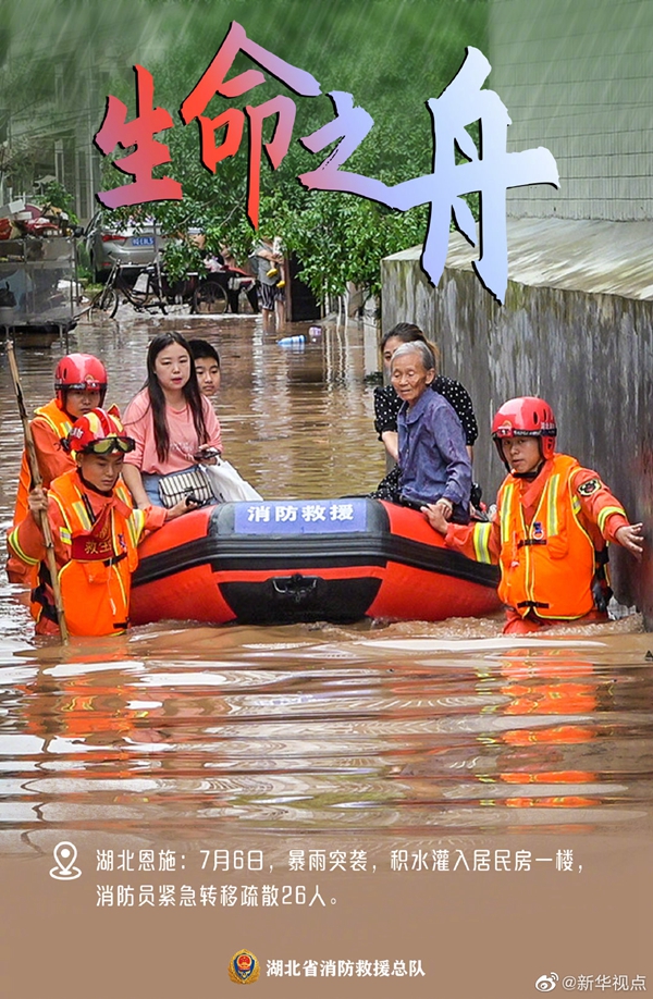湖北近期遭遇持續(xù)強降雨天氣,部分地區(qū)出現(xiàn)洪澇災(zāi)害。洪水襲來,在救援現(xiàn)場奔波忙碌的消防救援人員,始終沖在一線,“橙”風破浪,守護著人民群眾的生命和財產(chǎn)安全。這抹“橙”,成為災(zāi)區(qū)人民心中最溫暖的底色。向“逆行者”致敬?。ㄓ浾吡航◤姡?/p>