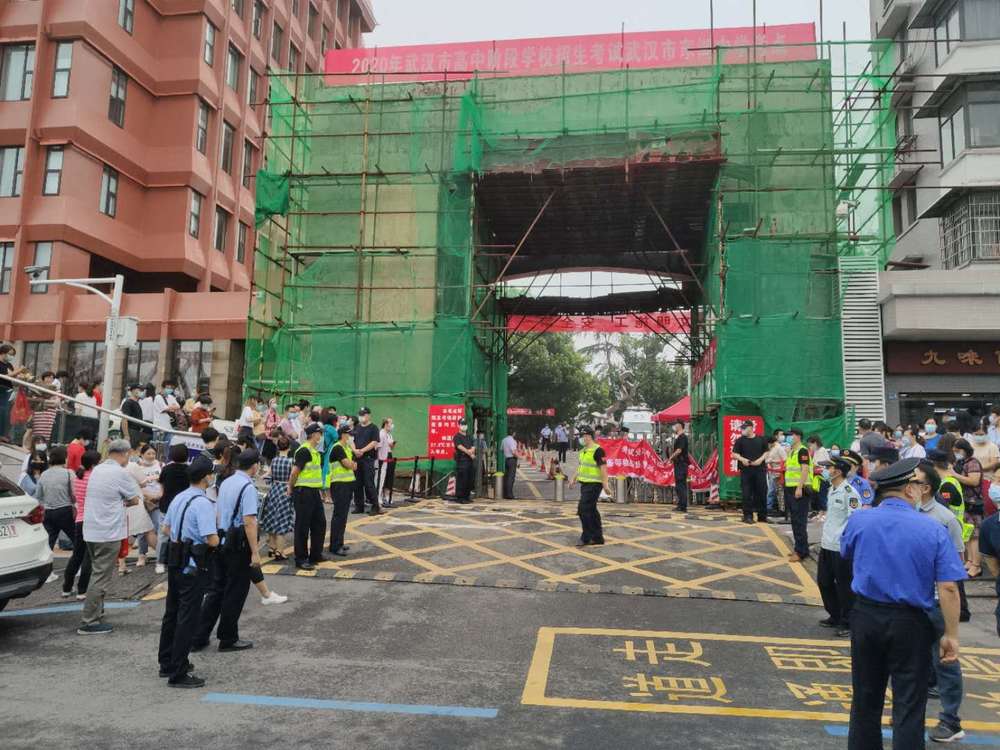 記者在武漢東湖中學(xué)考點(diǎn)門前看到,交警、民警、水務(wù)、電力、城管等多個部門工作人員嚴(yán)陣以待,以高考標(biāo)準(zhǔn)迎接考生進(jìn)場。