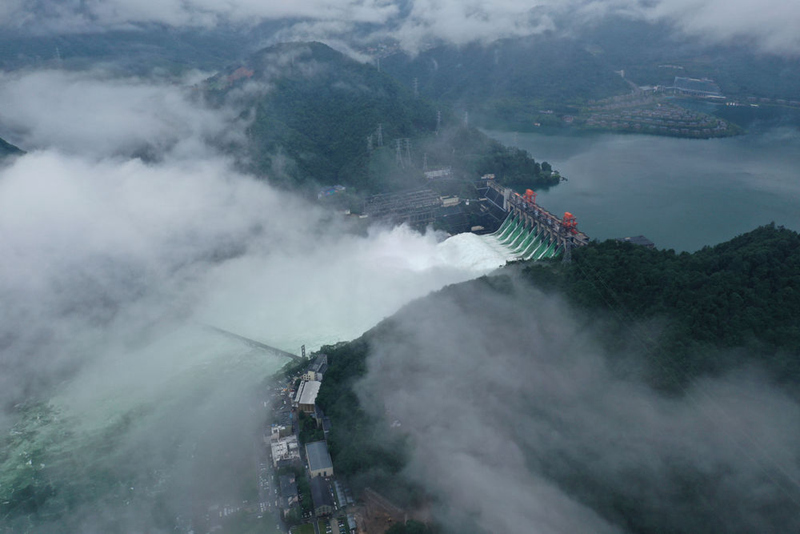 本次新安江水庫(kù)開九孔泄洪,最大出庫(kù)流量7600立方米/秒(含發(fā)電流量1200立方米/秒)。本次泄洪歷時(shí)173小時(shí),總出庫(kù)水量33.9億立方米(發(fā)電水量10.7億立方米,閘門泄洪水量23.2億立方米),為歷次泄洪總水量之首。