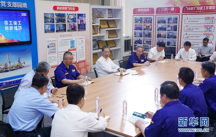 7月19日至22日,中共中央政治局常委、中央紀(jì)委書記趙樂際到江蘇調(diào)研。這是7月20日,趙樂際在徐工集團(tuán)徐州重型機械有限公司與職工代表座談交流。 新華社記者 張領(lǐng) 攝