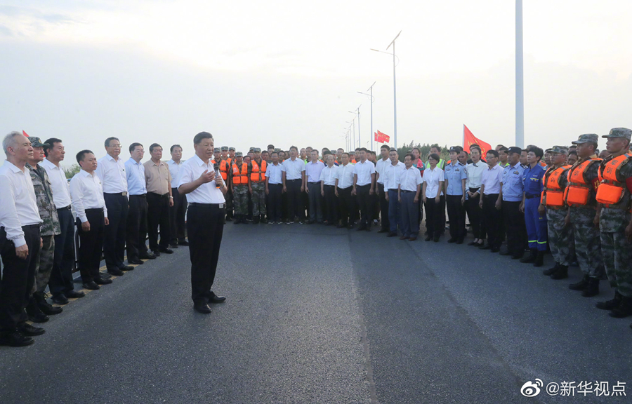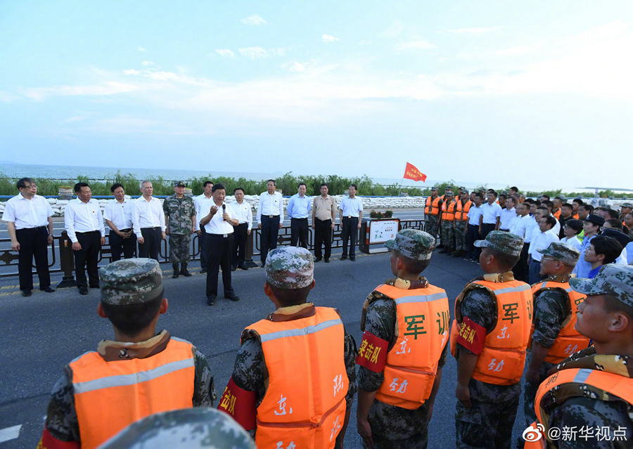 19日下午,正在安徽考察調(diào)研的習(xí)近平總書記來到合肥市肥東縣十八聯(lián)圩生態(tài)濕地蓄洪區(qū)巢湖大堤羅家疃段,察看巢湖水勢水情。他強調(diào),洪水退后,要防止蓄洪區(qū)內(nèi)出現(xiàn)水退人進的現(xiàn)象。我們要實現(xiàn)人與自然和諧相處,就不能同自然爭奪發(fā)展空間。八百里巢湖要用好,更要保護好、治理好,使之成為合肥這個城市最好的名片。(文字記者:張曉松 攝影記者:鞠鵬 王曄 燕雁)