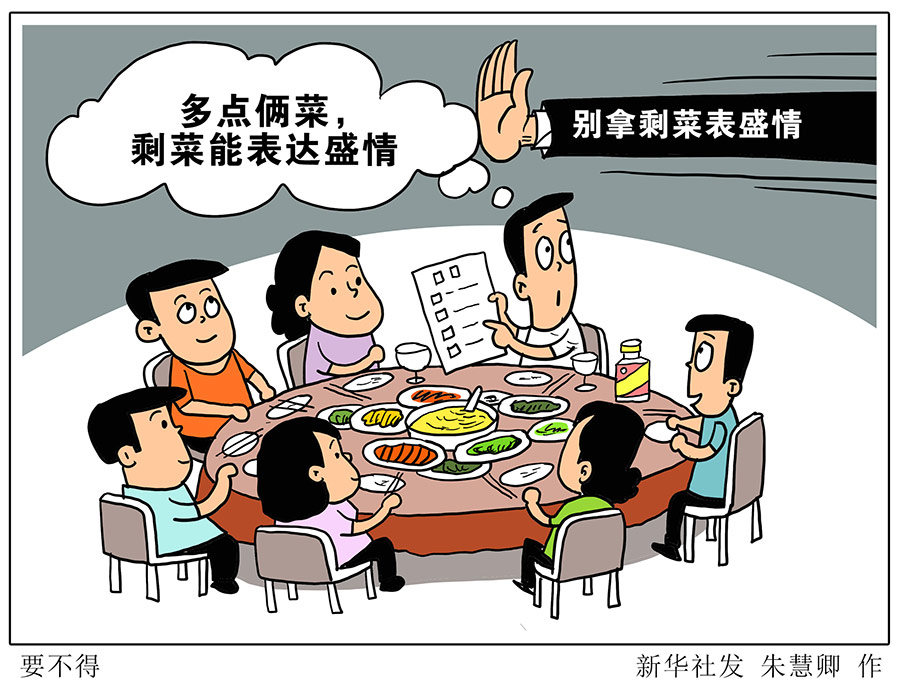 習(xí)近平總書記近日作出重要指示,強調(diào)堅決制止餐飲浪費行為切實培養(yǎng)節(jié)約習(xí)慣,在全社會營造浪費可恥節(jié)約為榮的氛圍。這一重要指示發(fā)人深省、飽含啟示。在日常生活中,主客散席時留下半桌剩菜的場面并不少見,寧可點多、絕不能少,這種以剩菜表達盛情的心態(tài)和行為要不得。