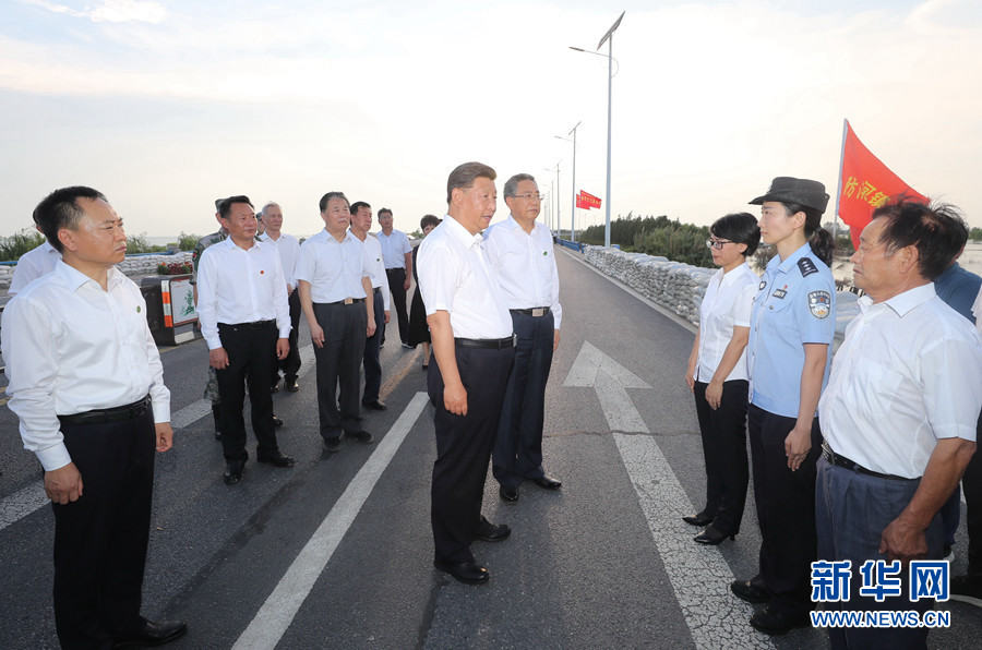 19日下午,習(xí)近平來(lái)到合肥市肥東縣十八聯(lián)圩生態(tài)濕地蓄洪區(qū)巢湖大堤羅家疃段考察。今年入汛以來(lái),巢湖水位多次突破歷史極值,合肥市主動(dòng)啟用十八聯(lián)圩及周邊圩區(qū)蓄洪。習(xí)近平仔細(xì)察看巢湖水勢(shì)水情,聽(tīng)取環(huán)巢湖主要圩口分洪及周邊濕地蓄洪、巢湖綜合治理情況匯報(bào),了解防汛物資和大堤加固情況。他強(qiáng)調(diào),要堅(jiān)持濕地蓄洪區(qū)的定位和規(guī)劃,盡快恢復(fù)生態(tài)濕地蓄洪區(qū)的行蓄洪功能和生態(tài)保護(hù)功能。他指出,當(dāng)前,南方有關(guān)地方要繼續(xù)抓好防汛救災(zāi)工作,同時(shí)要嚴(yán)防次生災(zāi)害。北方有關(guān)地方要對(duì)可能發(fā)生的汛情加強(qiáng)警戒和防范,全面落實(shí)防汛救災(zāi)各項(xiàng)工作,確保安全度汛,確保人民群眾生命財(cái)產(chǎn)安全。